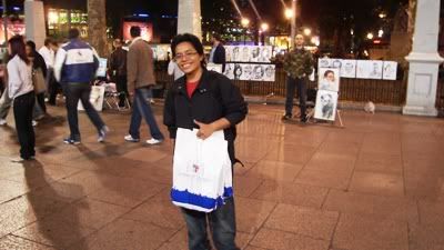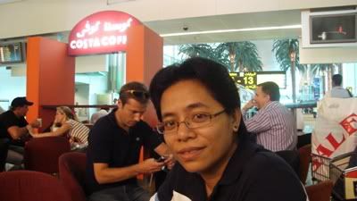 Flight kitorang transit di Dubai sebelum meneruskan perjalanan ke London. Bertolak pukul 12.55 malam pada 8 Ogos 2006. Sampai kat Dubai dalam pukul 4.30 pagi. Ni gambar aku dalam keadaan mengantuk tapi masih maintain sengih tak hengat. Bayangkan le betapa lama transit kat Airport tu. Flight ke London pukul 4.15 petang esoknya tau! Mujur amik langkah bijak dengan meronda2 bandar Dubai tu. Entah ke mana tapak kaki melangkah tapi teruskan jugak demi mengisi masa lapang yang sememangnya lapang tu. Bandar Dubai mmg banyak bangunan tapi yang tak bestnya berpasir sana sini. Memang tanah gurun. Sistem pengangkutan tak secanggih kita. Dorang masih utamakan bas dan teksi. Tapi teksi diorang mmg canggih. Tak macam kita. Shopping complex pun tak secanggih kita. Tapi disebabkan Dubai antara negara kaya, aku pasti banyak tokey2 minyak yang berniaga kat situ. Bangunan memang besar2 dan canggih2 tapi bagi aku Dubai tetap nampak kosong. Alhamdulillah, at least aku dah jejak bumi Arab tu kan?